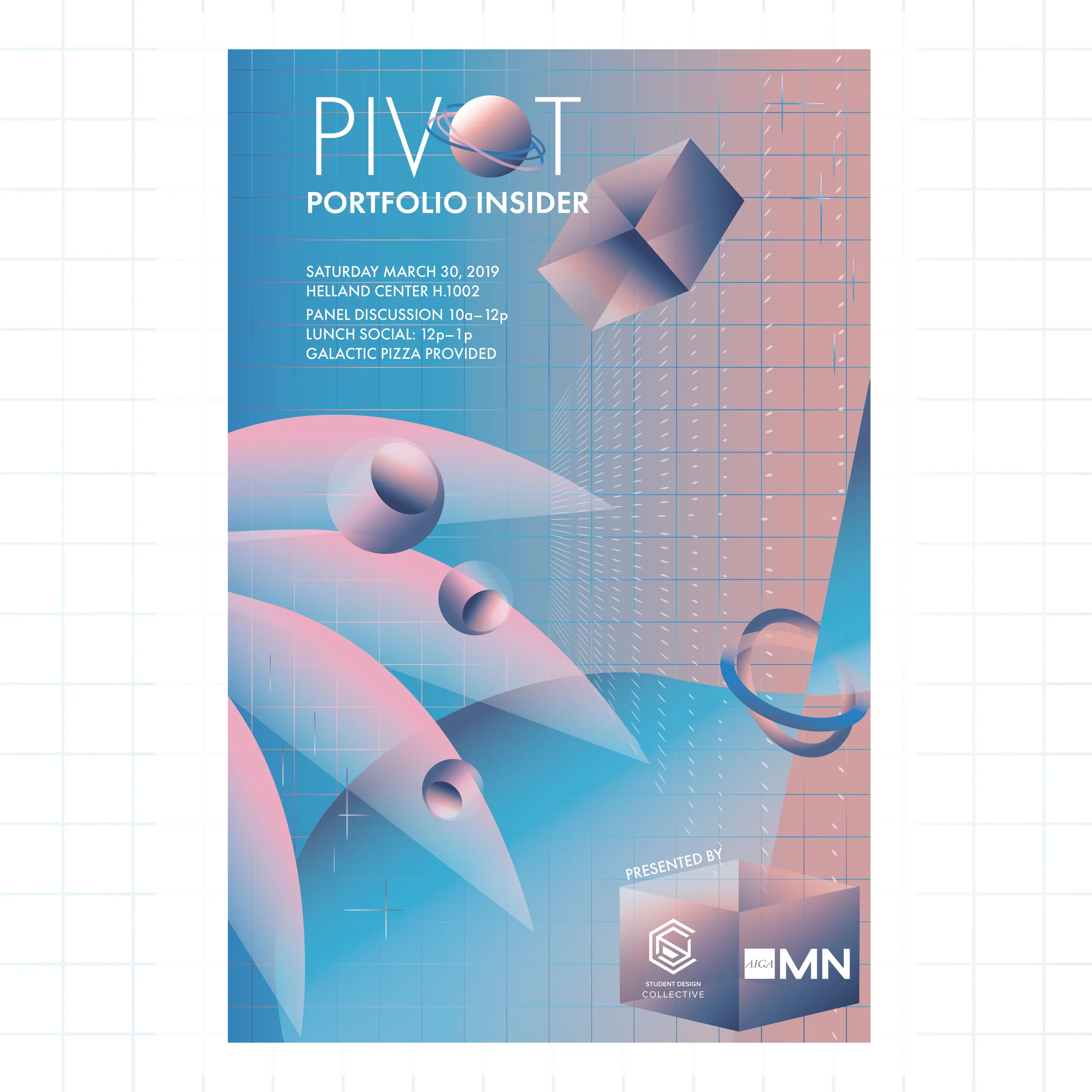 Project managed and directed all design and branding for AIGA’s featured event: Pivot Portfolio hosted at Minneapolis College in Fall 2019.